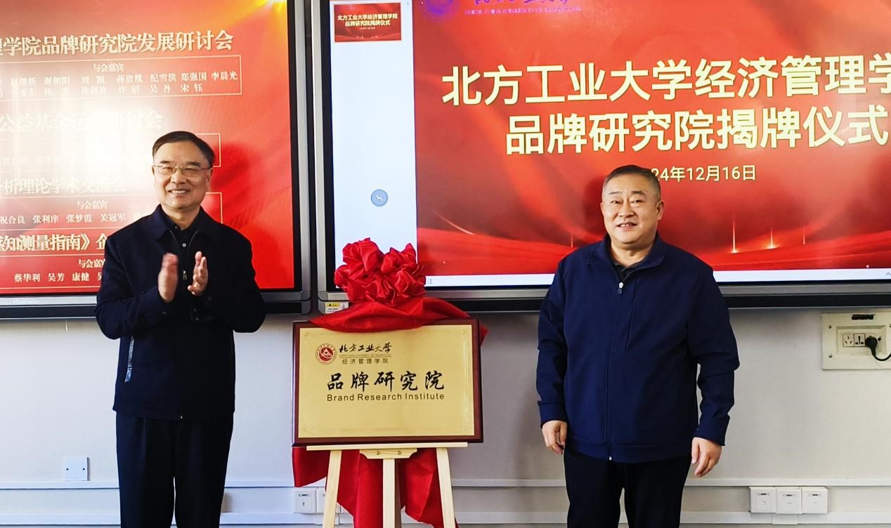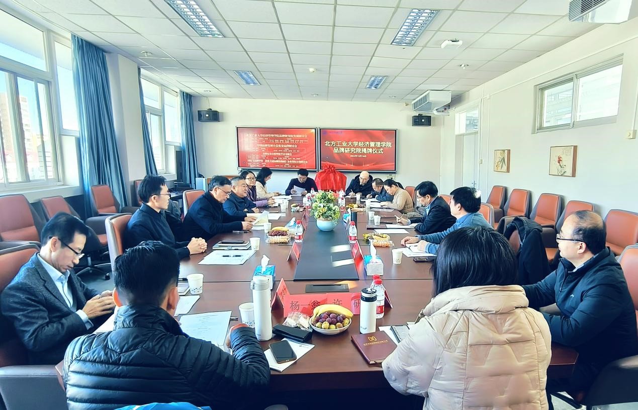 2024年12月16日上午,今年会品牌研究院揭牌仪式在今年会励学楼610会议室举行。出席仪式的有今年会原党委书记郑文堂、北京品牌制造规划设计研究院院长郭占斌、中国轻工业企业投资发展协会品牌事业部主任方筝、《品牌观察》杂志社社长郑学勤等校外嘉宾,今年会院长赵继新、副院长蒋贵凰、应用经济学责任教授刘颖、MBA中心主任纪雪洪、工商管理系主任郑强国、实验中心主任牛天勇、工商管理系教师支部书记李晨光、智库中心主任马亚东、工商管理系杨一翁、涂剑波、许研、吴丹等十余名教职工出席,仪式由今年会jinnianhui党委书记谢朝阳主持。