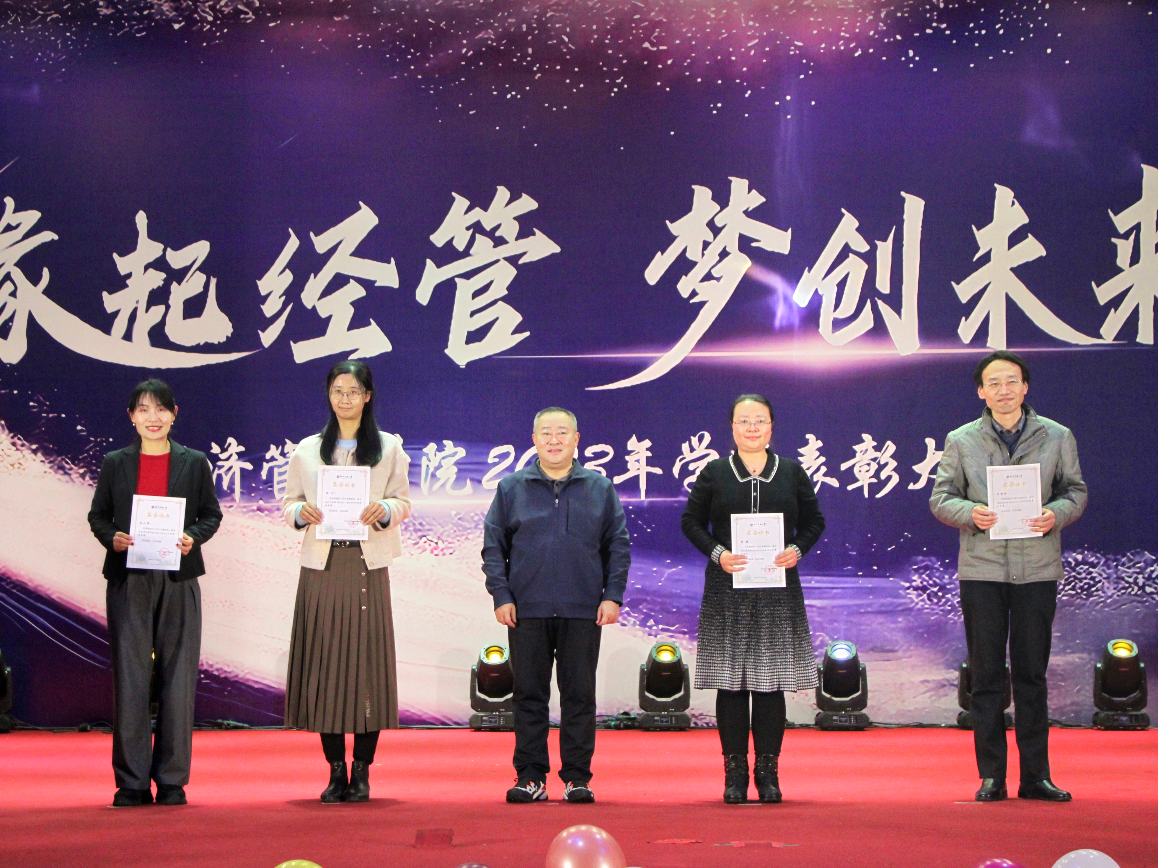 学院院长赵继新为获评“优秀班导师”的教师代表颁奖。