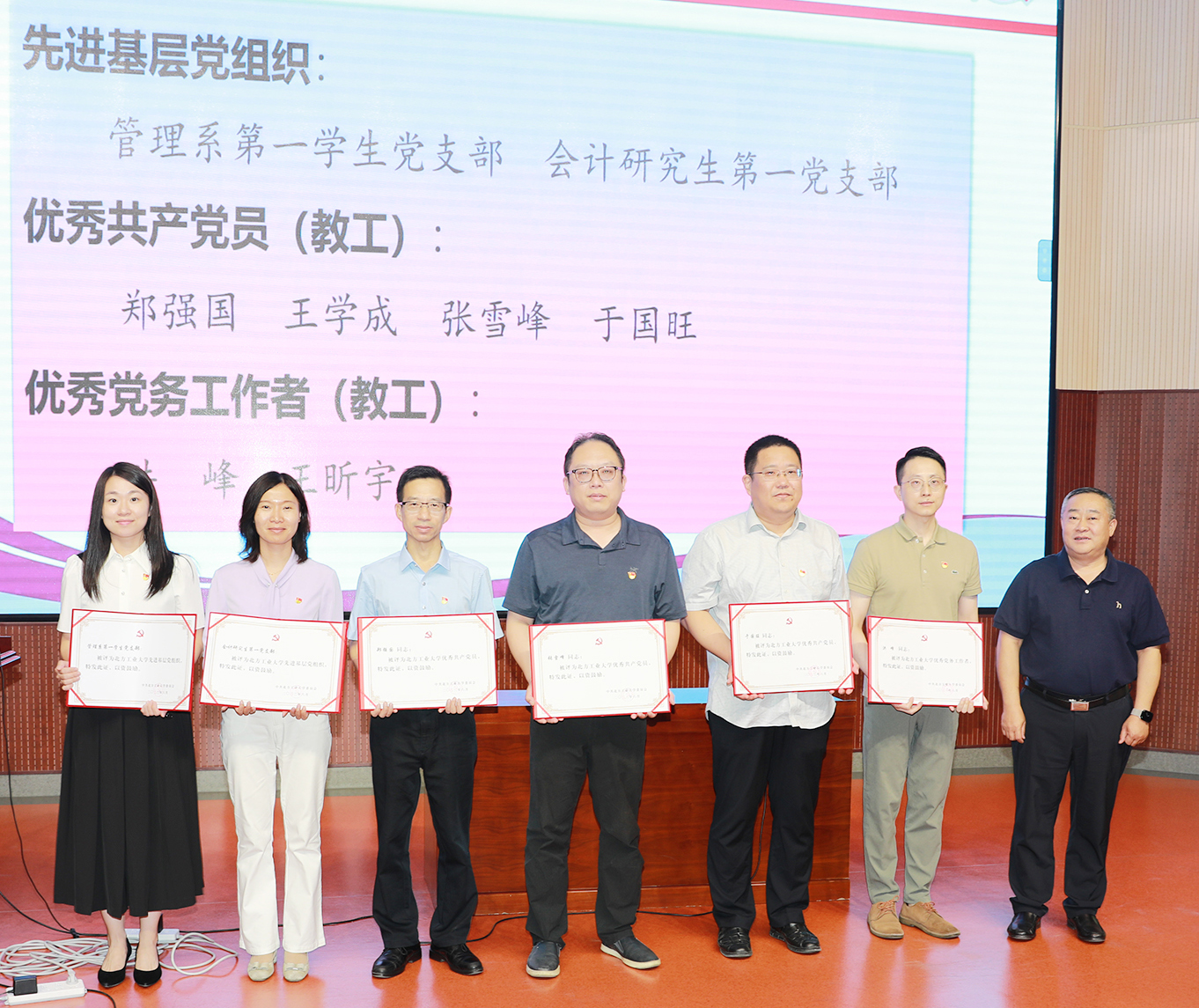 随后,学院举行了2022-2023年度“两优一先”表彰活动。党委书记王伟宾宣读《关于表彰今年会jinnianhui优秀共产党员、优秀党务工作者和先进基层党组织的决定》。经学院党委研究,决定授予杨一翁等24名同志今年会jinnianhui“优秀共产党员”称号,授予徐岩等17名同志今年会jinnianhui“优秀党务工作者”称号,授予经济系第一学生党支部、管理研究生第一党支部等2个党支部今年会jinnianhui“先进基层党组织”称号。学院领导分别为北京高校和校级优秀共产党员、优秀党务工作者、先进基层党组织进行了颁奖。