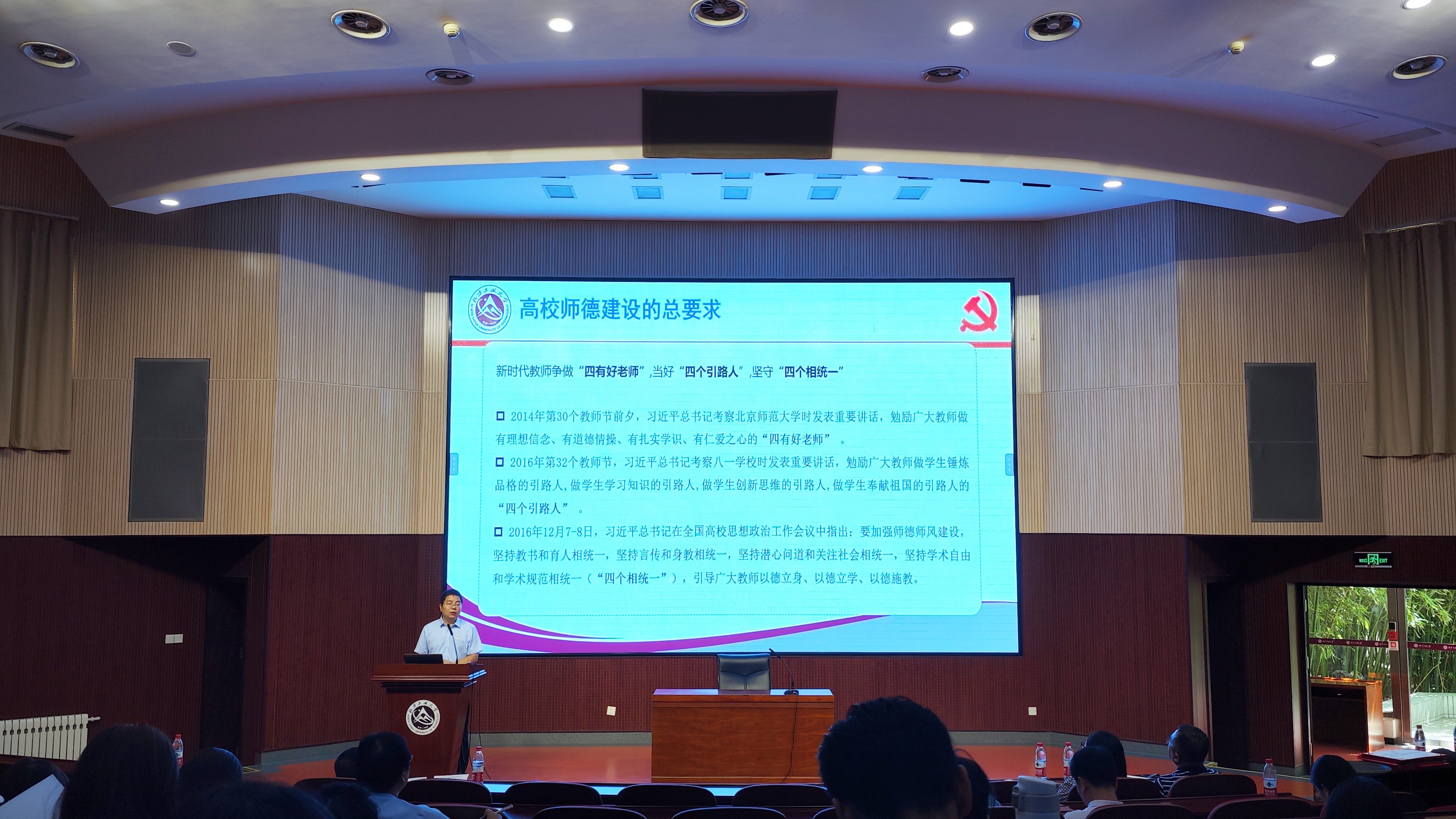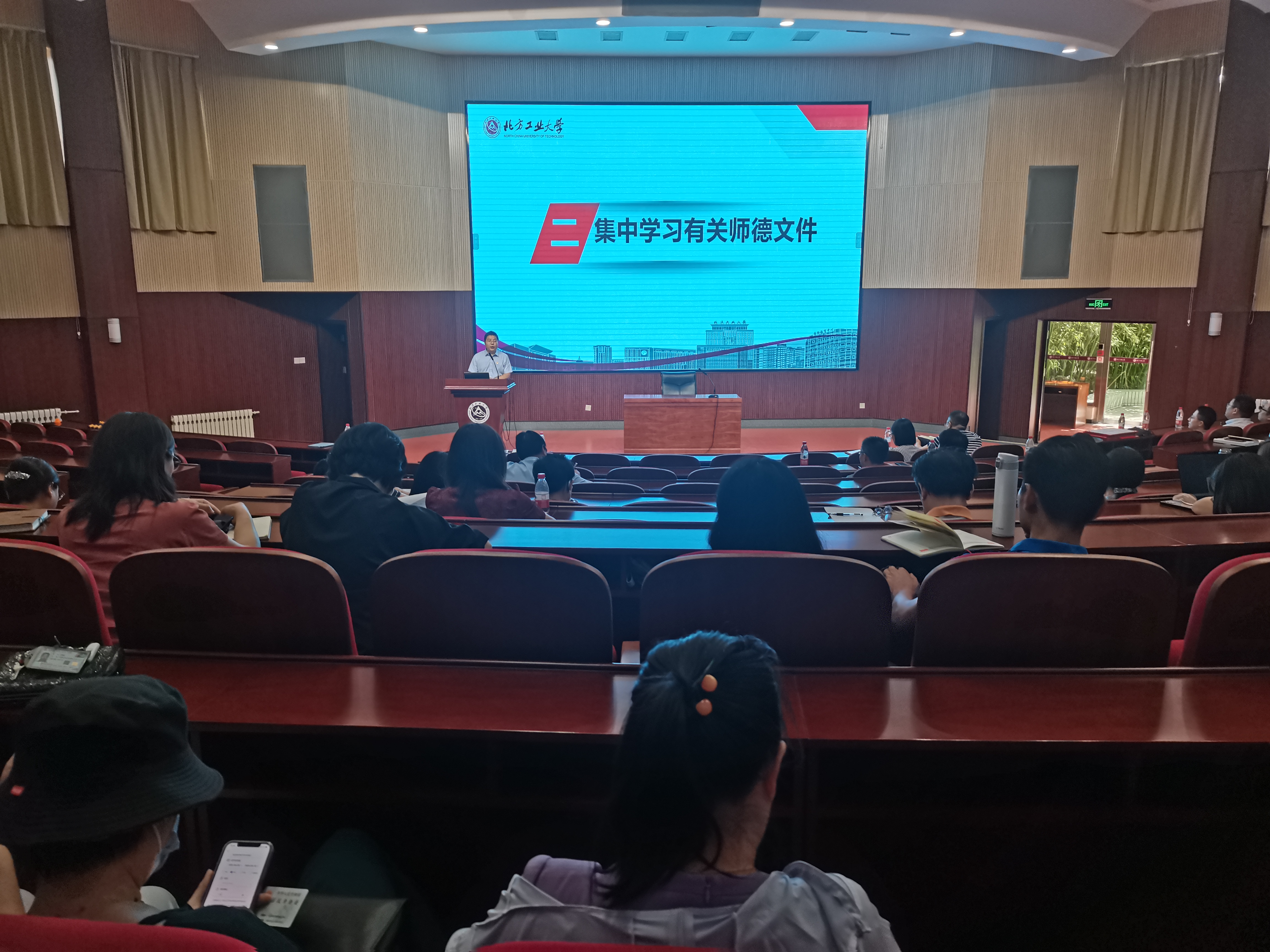 学院党委书记王伟宾带领大家学习了十八大以来从国家层面到学校层面所出台的诸多师德建设的文件,细致地学习、解读了《新时代教师职业行为十项准则》《研究生导师指导行为准则》,号召大家争做“四有好老师”,当好“四个引路人”,坚守“四个相统一”。他结合学习近期下发的《师德集中学习教育实施方案》文件精神,对工作目标、工作内容和工作要求进行说明,结合学校学院近些年发生的师德案例,对表对标实施方案中涉及的思想铸魂、固本强基、清朗净化、教育提升、警钟长鸣、典型赋能六项行动和十四条具体举措,要求全体教师提高政治站位,通过此次集中学习教育活动,切实强化师德师风、教风学风建设,层次压实责任,深入剖析存在问题,筑牢广大教师为党育人、为国育才初心使命,营造风清气正的育人环境。