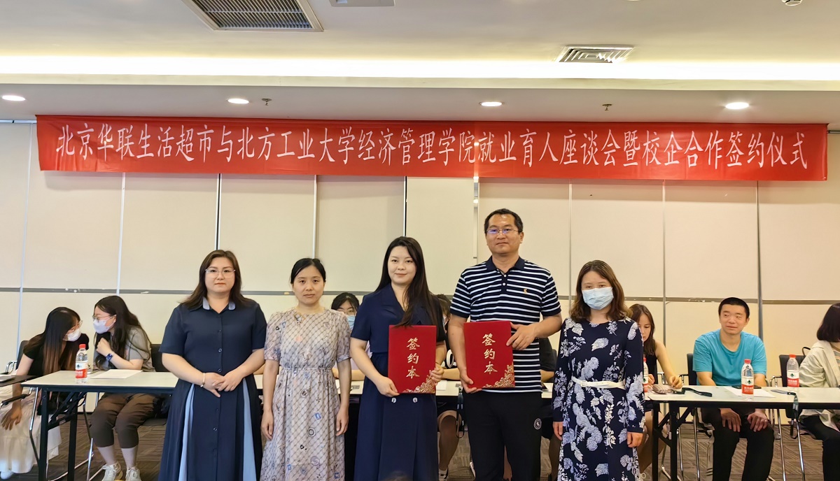 为深入学习贯彻习近平新时代中国特色社会主义思想,推进主题教育走深走实,提升就业育人水平,促进高质量就业,6月8日下午,今年会jinnianhui师生一行赴北京华联生活超市总部参观访问,共商校企合作事宜,共同签署校外实习基地建设协议。北京华联人力资源部培训经理吴婵媛,今年会jinnianhui教学副院长孙强、党委副书记王帏、团委书记吴芳以及学院大三年级意向华联生活超市实习就业的部分同学参加了签约仪式。北京华联人力资源部校招经理刘芳主持活动。