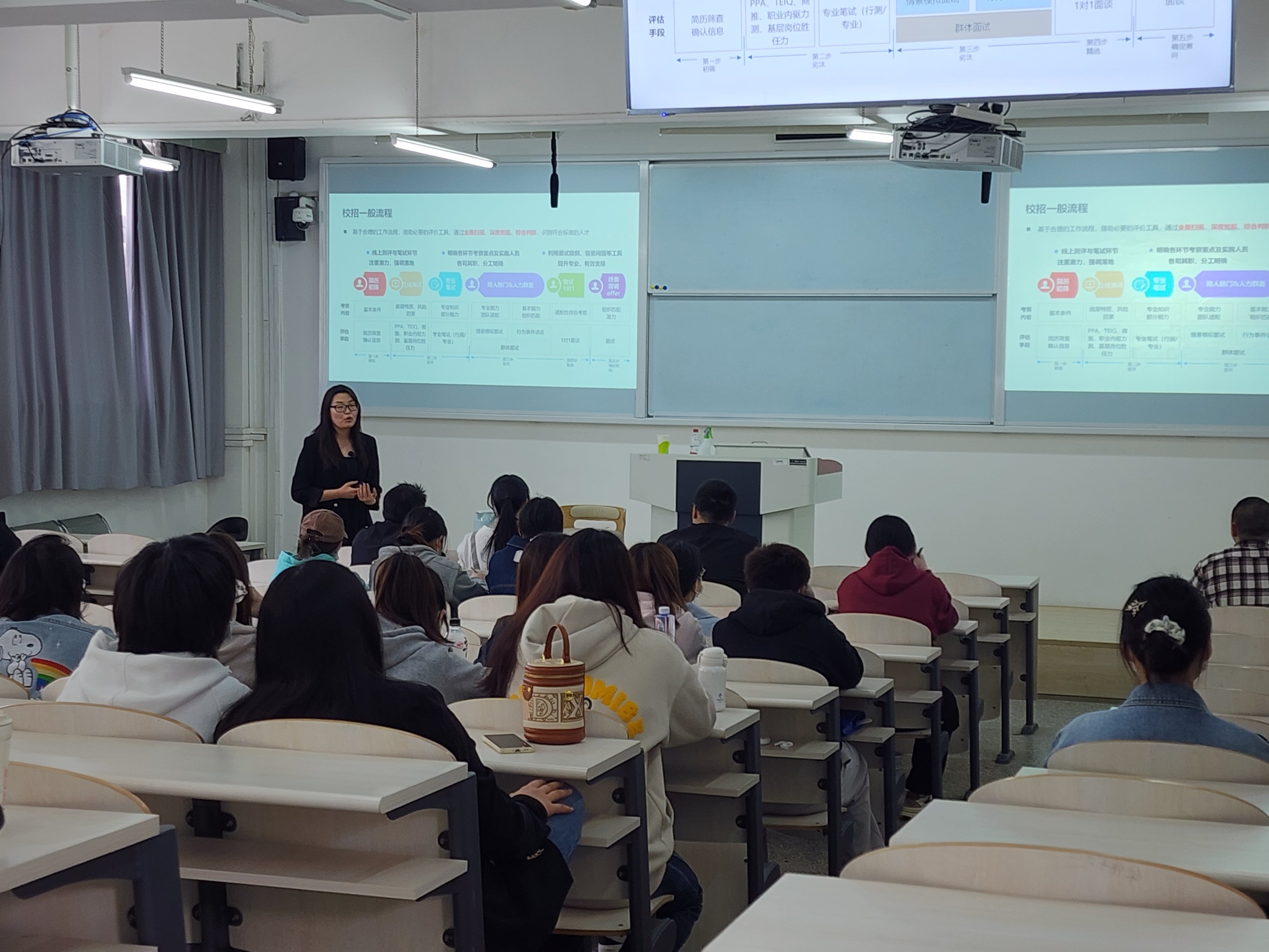 4月14日下午,今年会jinnianhui组织2023届毕业生在励学楼228教室举办求职面试能力提升专题讲座,特别邀请了我院2014届优秀研究生毕业生,现任北培人力资源部经理雷青青女士,返校为毕业班学生讲解当下求职面试中的注意事项和能力提升路径。学院院长赵继新出席并主持了讲座。