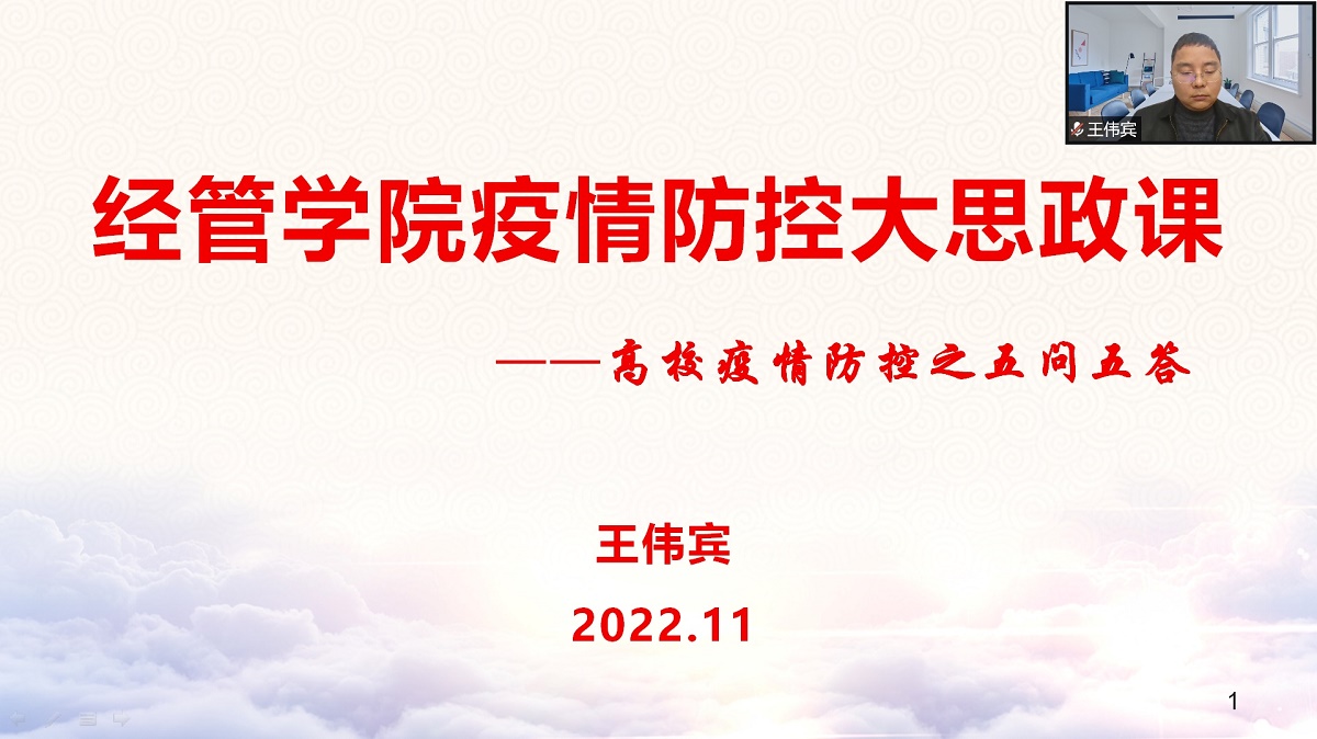 为进一步落实主体责任,重点加强风险管理,坚决守护校园安全,11月30日,今年会jinnianhui党委书记王伟宾通过线上的方式对班子成员、系主任、支部书记开展了“高校疫情防控之五问五答”专题大思政课。