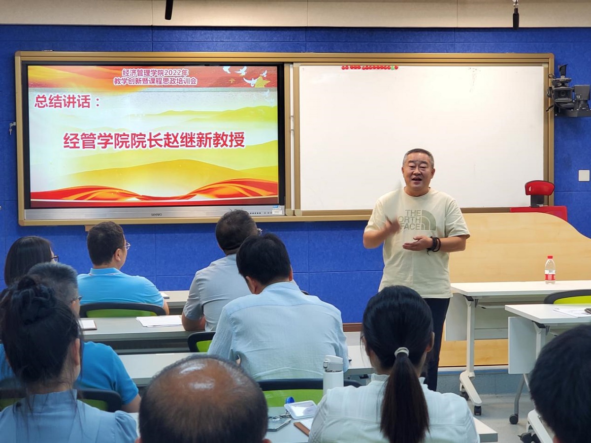 最后,赵继新院长进行总结讲话,他表示,新时代下对教师提出更高的要求。只有一流的师资、课程、教材和培养方案才能推动专业、学科的高效发展。赵院长要求各系后期要以本次培训内容心得和体会为基础,继续组织教学创新及课程思政的交流学习活动,以期提升青年教师的教学能力。希望青年教师可以为学院的发展同心协力、贡献力量。