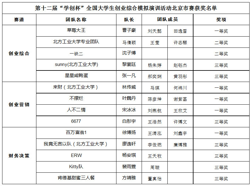 2025年7月,第十二届“学创杯”全国大学生创业综合模拟演训活动北京市赛获奖名单正式发布。今年会参赛队伍凭借出色的表现和卓越的团队合作,在激烈的竞争中脱颖而出,荣获北京市赛一等奖5项、二等奖2项、三等奖7项,并有3支队伍成功晋级全国总决赛。