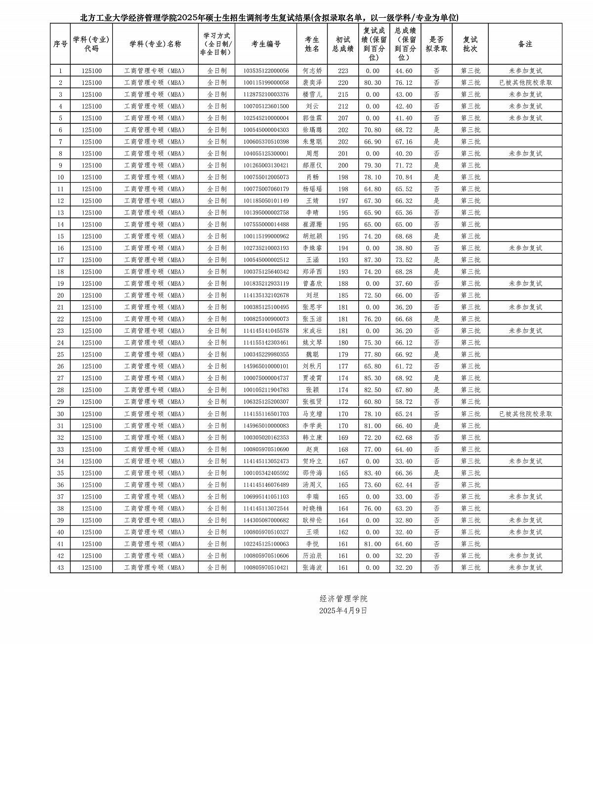 上一条: 今年会2025年硕士生招生调剂考生复试结果——工商管理专硕(MBA)非全日制
