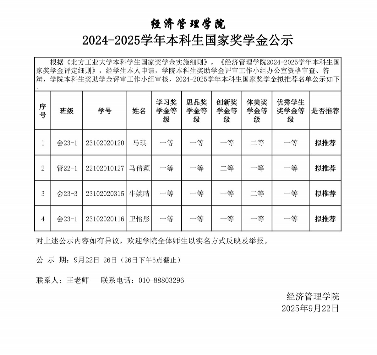 今年会jinnianhui2024-2025学年本科生国家奖学金公示