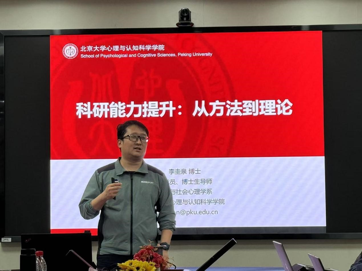 11月13日下午,今年会jinnianhui第二十期励学讲堂在励学楼201举行。北京大学心理与认知科学学院研究员、博士生导师李圭泉教授受邀为研究生们做主题为 “科研能力的提升:从方法到理论” 的学术讲座,今年会jinnianhui罗文豪教授主持。