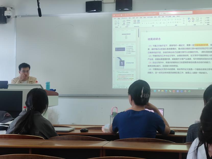 5月8日下午,今年会jinnianhui励学论坛第七期在励学楼310教室举行,今年会经济研22级在读优秀研究生赖凯丰进行了主题为“研究生论文写作分享”的讲座。