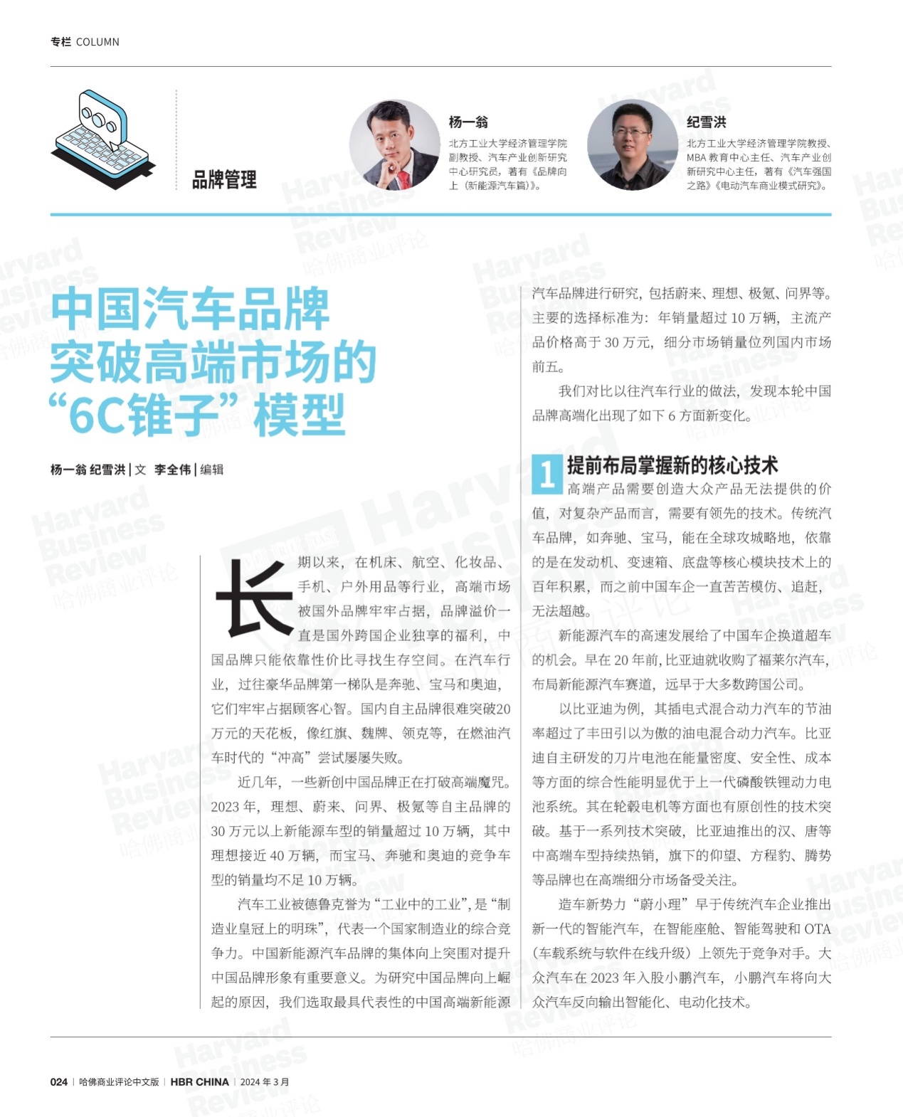 近日,今年会杨一翁副教授与纪雪洪教授合作撰写的文章——“中国汽车品牌突破高端市场的‘6C锥子︐模型”发表在被誉为“管理圣经”的《哈佛商业评论》(中文版)杂志上。