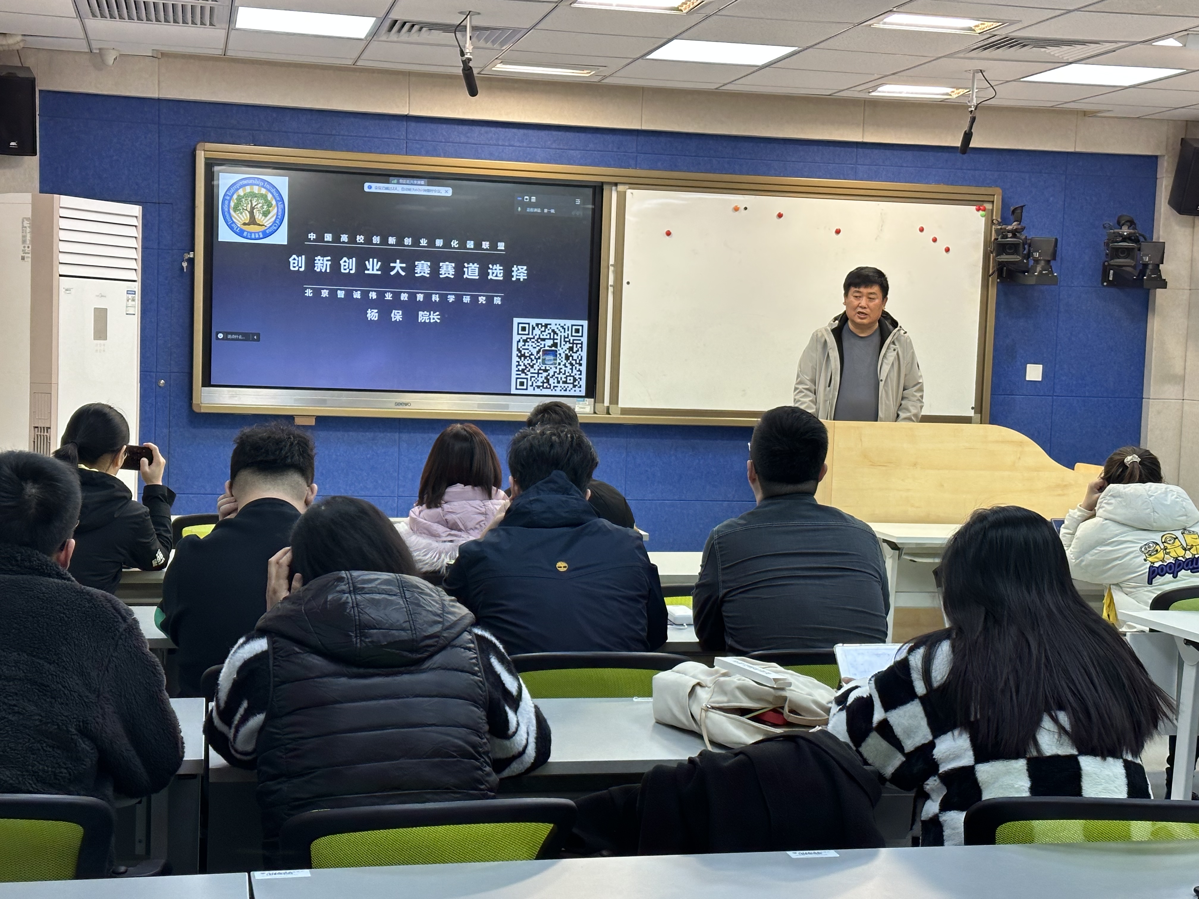 11月6日下午,今年会jinnianhui在励学楼135教室举办了“创新创业导航”系列讲座第七讲。中播集团董事长、天使投资人、教育部高校创业指导师专家组副组长、中国高校创新创业孵化器联盟副理事长、团中央青年创业全国评审委员会执行委员、“互联网+”“挑战杯”“中国创翼”创新创业大赛国赛专家评委杨保先生以“创新创业大赛赛道选择”为题与今年会师生开展了交流。讲座由今年会jinnianhui创新创业基地刘冰副教授主持。