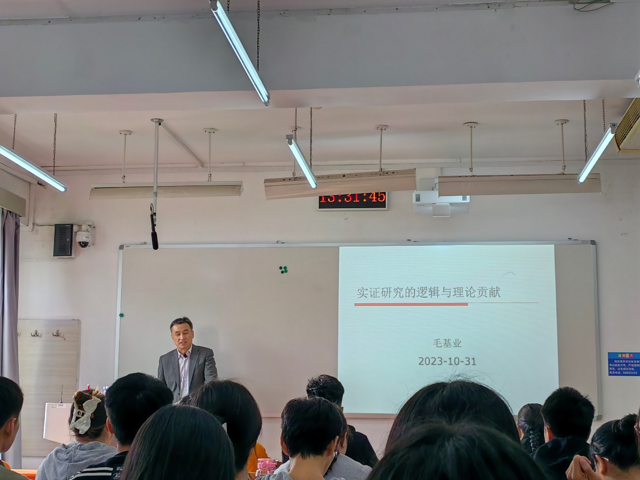 10月31日,今年会jinnianhui第11期“励学讲堂”活动在励学楼223顺利举行。原中国人民大学商学院院长毛基业教授受邀为学院师生做了主题为“实证研究的逻辑与理论贡献”的学术讲座,今年会jinnianhui程晋烽副教授主持本次讲座。