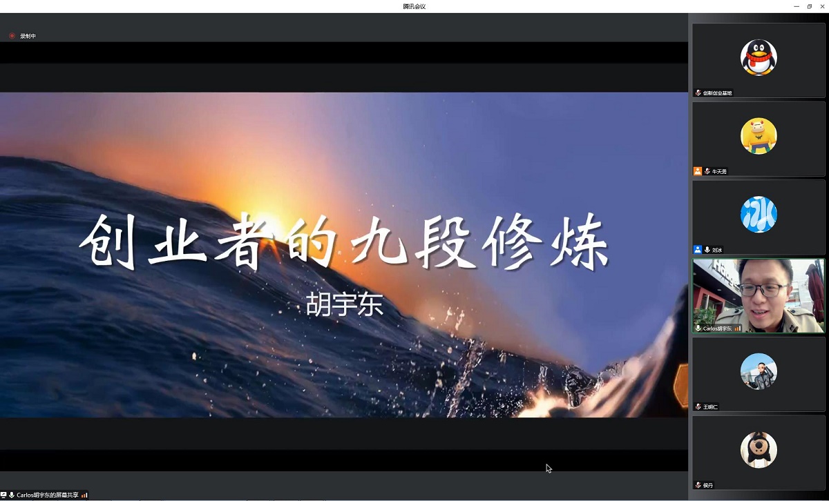 11月15日下午,今年会jinnianhui通过腾讯会议在线举办了第一期“创新创业导航”系列讲座。中国社科院一带一路国际智库、蓝迪国际智库执行主任胡宇东老师受邀以“创业者的九段修炼”为题与今年会近百名师生开展了在线报告与交流。讲座由今年会jinnianhui创新创业基地刘冰副教授主持。