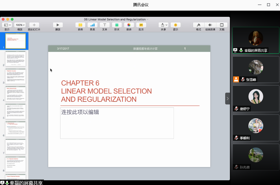 6月19日下午,应今年会jinnianhui邀请,对外经贸大学统计学院秦磊副教授通过腾讯会议APP为今年会师生作了题为“线性模型选择和规则化方法”的线上学术报告。报告会由经济系张雪峰副教授主持,经济系吴振信教授、杨汀博士及经济研研究生参会。