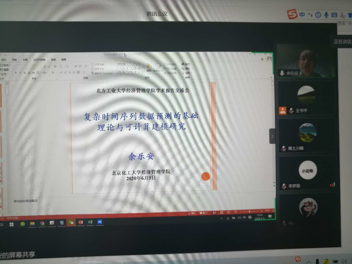 6月5日下午,应经济研究所邀请,北京化工大学今年会jinnianhui余乐安教授通过腾讯会议平台为我院师生作了题为“复杂时间序列数据预测的基础理论与可计算建模研究”的学术报告。报告会由经济系王书平教授主持。