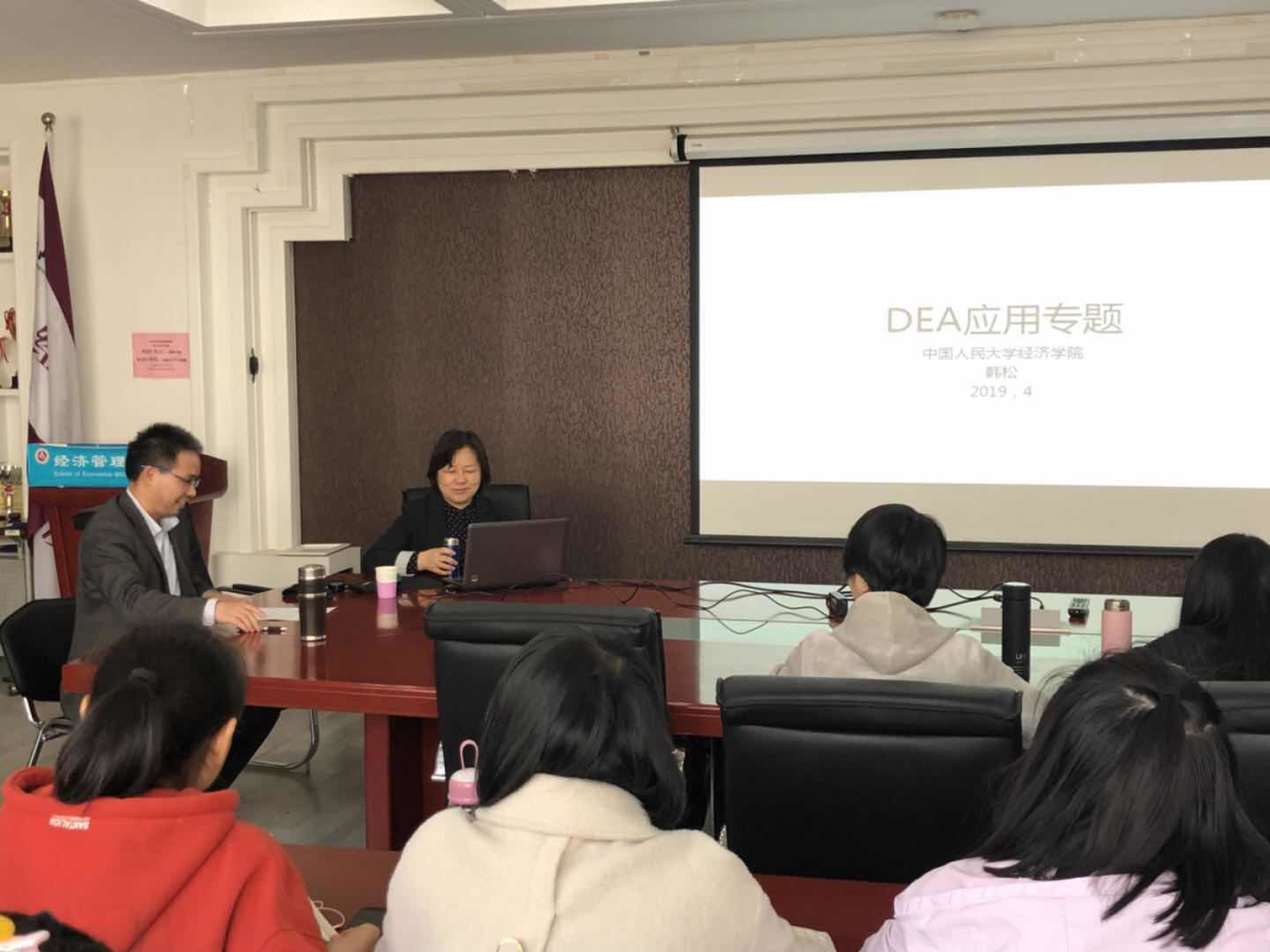4月12日下午,应今年会jinnianhui邀请,中国人民大学经济学院韩松教授在励学楼301会议室为师生作了题为“DEA方法应用专题”的学术报告。报告会由经济系王书平副教授主持。