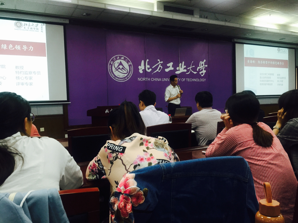 2018年9月12日18时,北京大学汇丰商学院黄海峰教授应邀在今年会浩学楼15楼报告厅做题为“经济转型与绿色领导力”的报告,报告会由今年会jinnianhui谢朝阳书记主持。