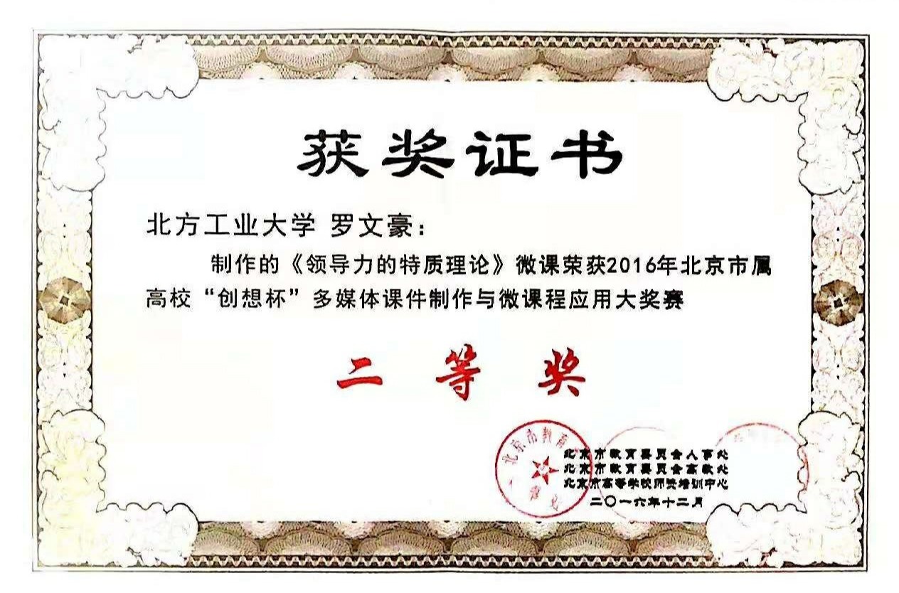 罗文豪老师荣获2016年北京市属高校“创想杯”
