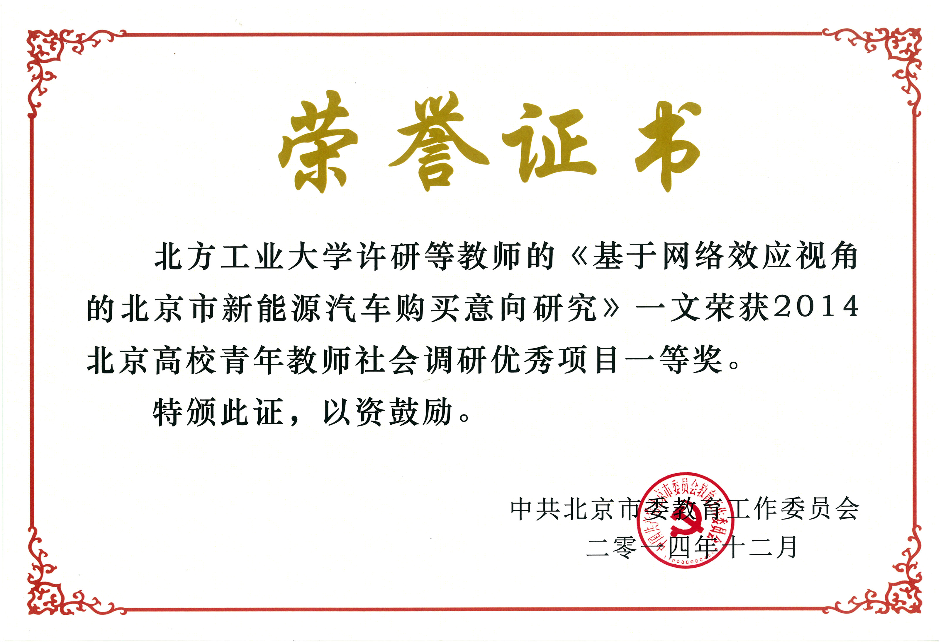 许研等老师荣获2014北京高校青年教师社会调研优秀项目一等奖 |