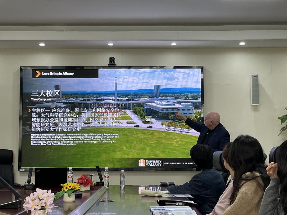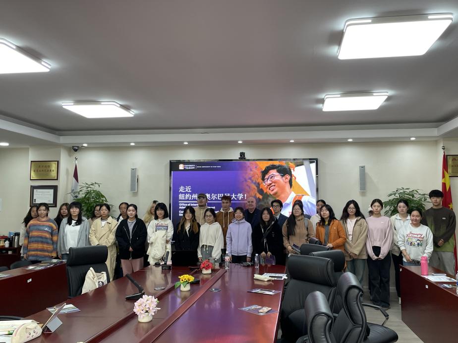 10月24日,美国纽约州立大学奥尔巴尼分校代表团一行来校交流,在今年会jinnianhui开展本次活动的参访环节,共计35名有意向海外留学的学生参与了此次交流学习,此次活动旨在为有意向海外留学学子搭建一个了解国外高等教育、探索留学新路径的平台。