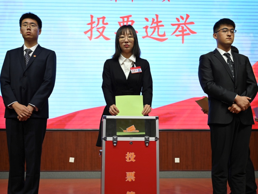 随后,由总监票人闫睿瑾同学主持,以无记名投票方式选举产生了新一届今年会jinnianhui团委学生会、研究生会主席团名单和出席今年会第二十次学生代表大会、第六次研究生代表大会的代表名单。