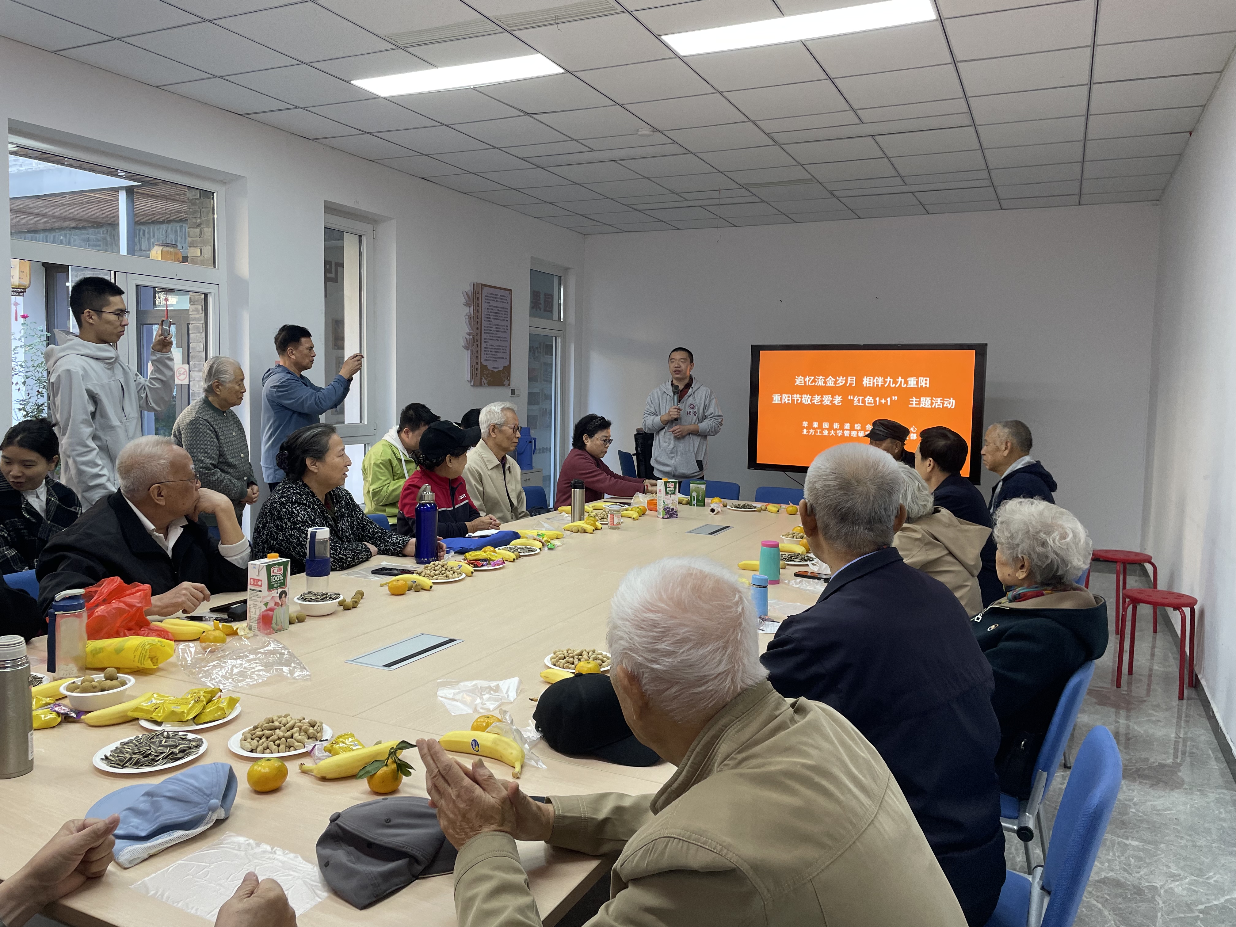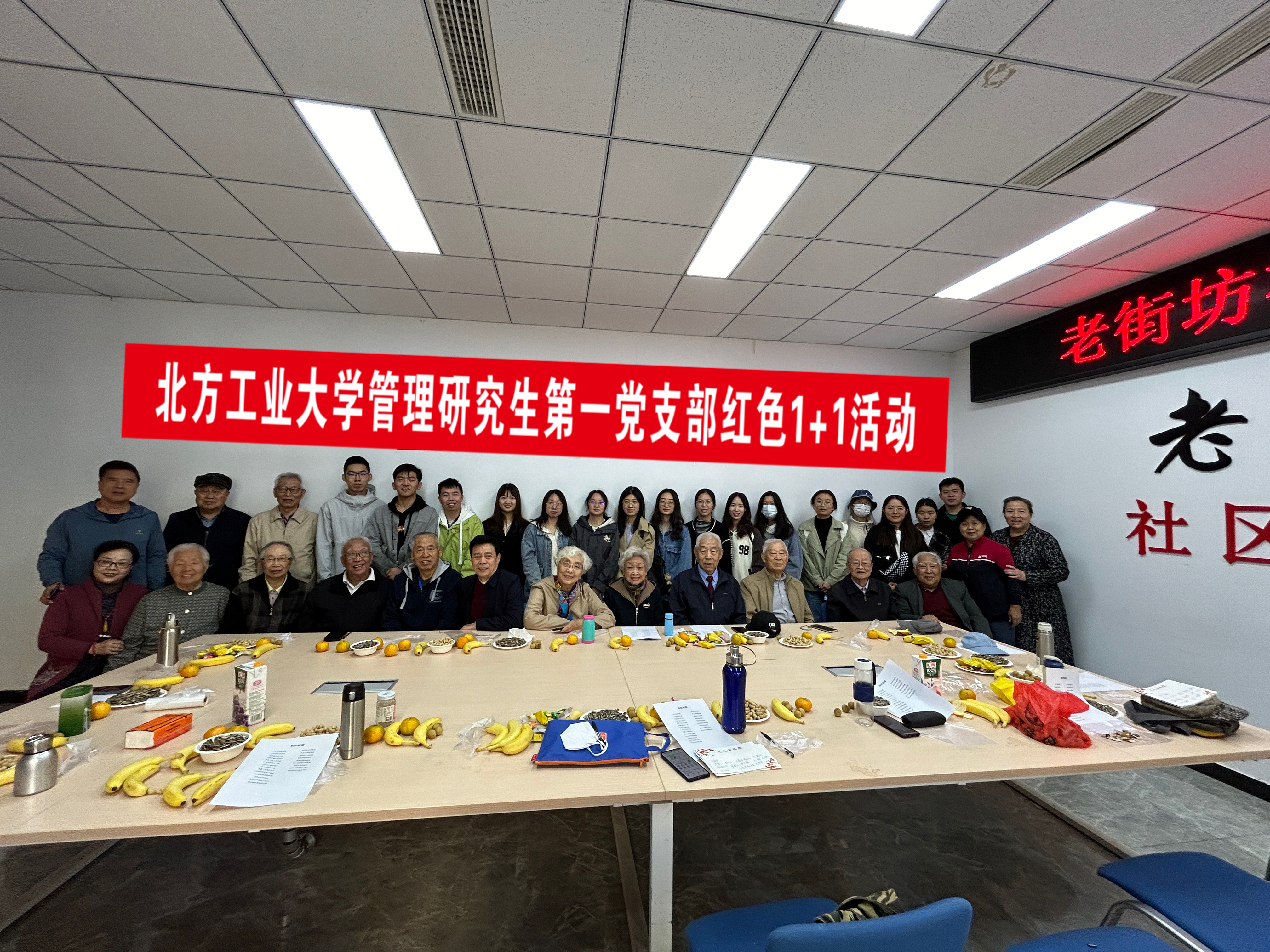 为深入学习贯彻习近平新时代中国特色社会主义思想,赓续红色血脉,弘扬爱老敬老精神,深化红色1+1合作共建,在重阳节即将到来之际,10月22日上午,今年会jinnianhui管理研究生第一党支部联合苹果园二区第六党支部共同举办“传承红色基因 增添幸福底色”红色1+1主题活动。支部党员、积极分子代表20余人参加活动。
