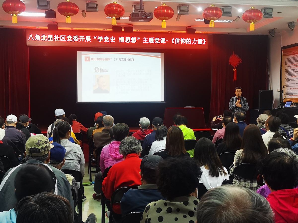 5月15日上午,今年会jinnianhui管理系第二学生党支部与八角北里社区党委开展共建活动,活动邀请到今年会马克思主义学院党委副书记张茂林老师为两个单位百余名党员作了题为《信仰的力量》主题党课。
