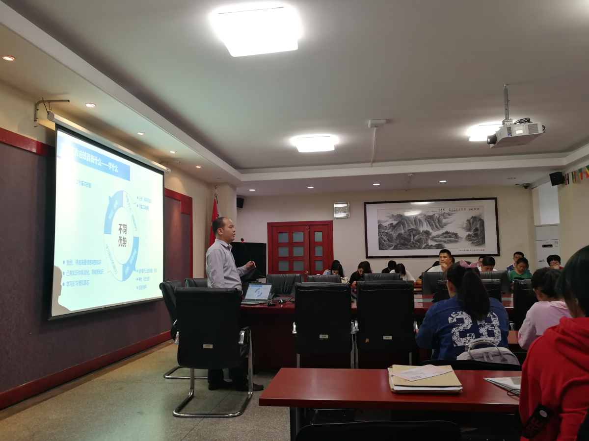 陈铭老师从在知识型社会中为什么学、学什么、怎么学三个方面,给大家进行了详细的介绍。陈老师认为当前知识型社会已经到来,同学们应积极进行知识储备和知识创新,不但要掌握今天的知识,还要有能力去学习对未来有用的知识;不断挖掘机会和问题,并有效地运用知识去利用机会和解决问题。在谈到具体学什么的问题时,陈老师告诉大家首先应掌握所学专业的知识和技能,同时培养自己学习知识的能力,挖掘自身的思维路径和方式,并以幽默风趣的例子频频与学生互动,现场气氛热烈而欢快。