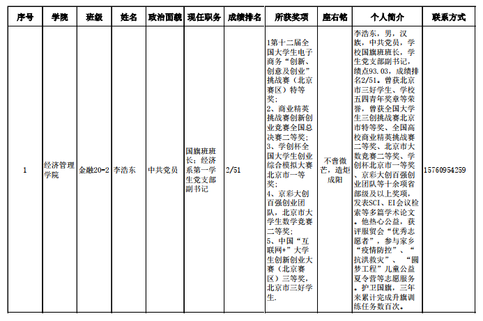 2022年国家奖学金候选人