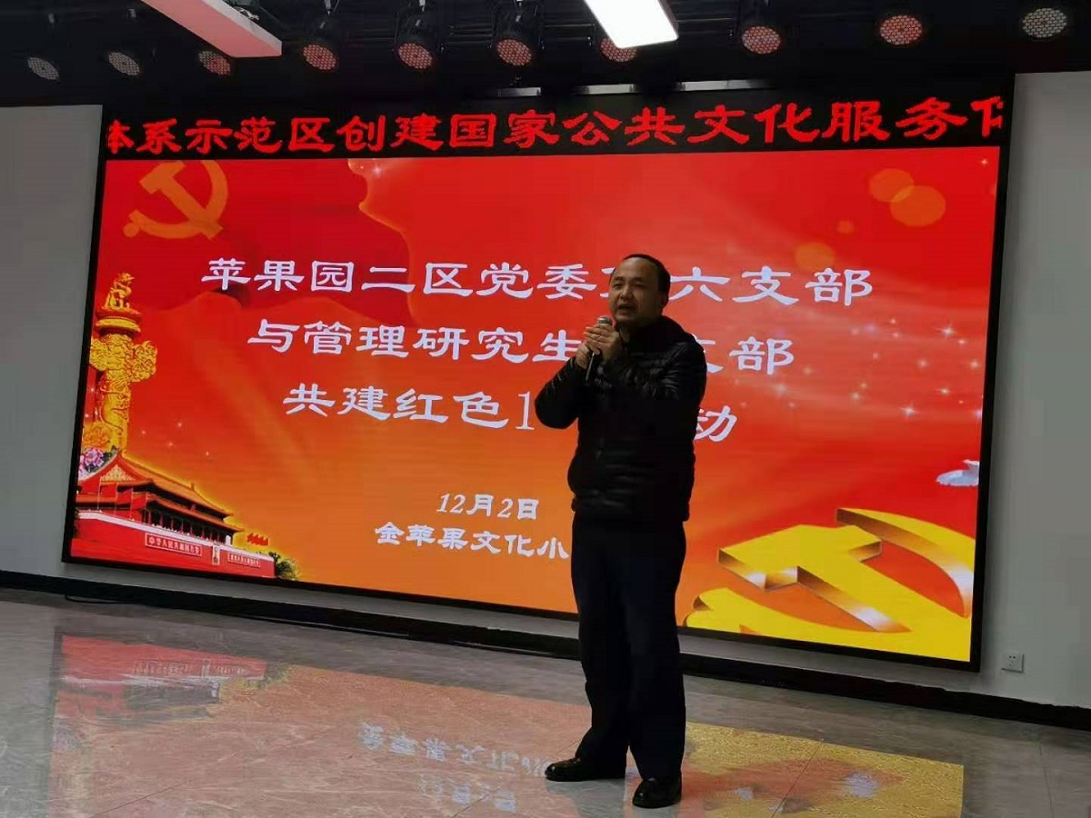 “红色铸就信念,知识走进社区”——管理研究生党支部与苹果园二区第六党支部共建红色“1+1”支部活动