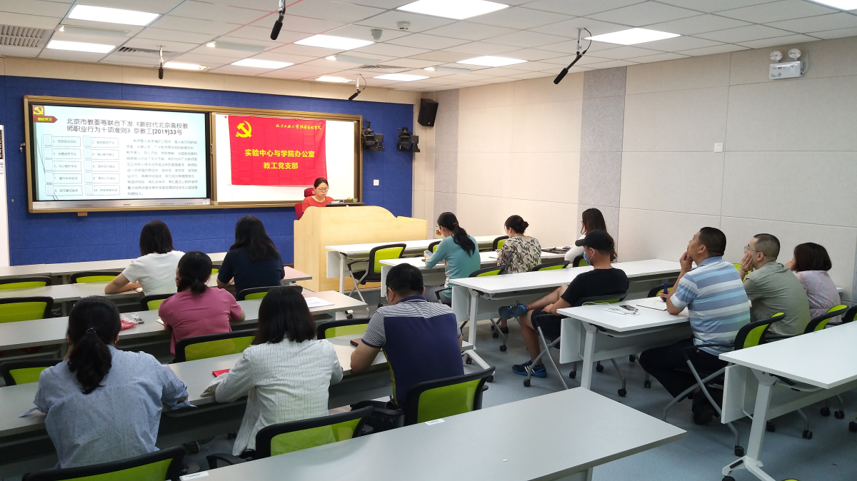 会上首先由中办党支部宣传委员侯晓丽同志宣读《新时代北京高校教师职业行为十项准则》,牛天勇同志对《新时代北京高校教师职业行为十项准则》、《北京高校教师师德考核办法》及《关于北京高校教师师德失范行为处理的指导意见》进行了详细的解读,强调与会教师必须注意规避教学、科研、学生管理工作中容易出现的师德失范行为,要求教职工应规范职业行为、明确师德底线、弘扬高尚师德。会上教师同志们纷纷表示要进一步增强自身责任感、使命感、荣誉感,努力成为有理想信念、有道德情操、有扎实学识、有仁爱之心的四有好老师,做好学生锤炼品格、学生学习知识、学生创新思维、学生奉献祖国的四个领路人。