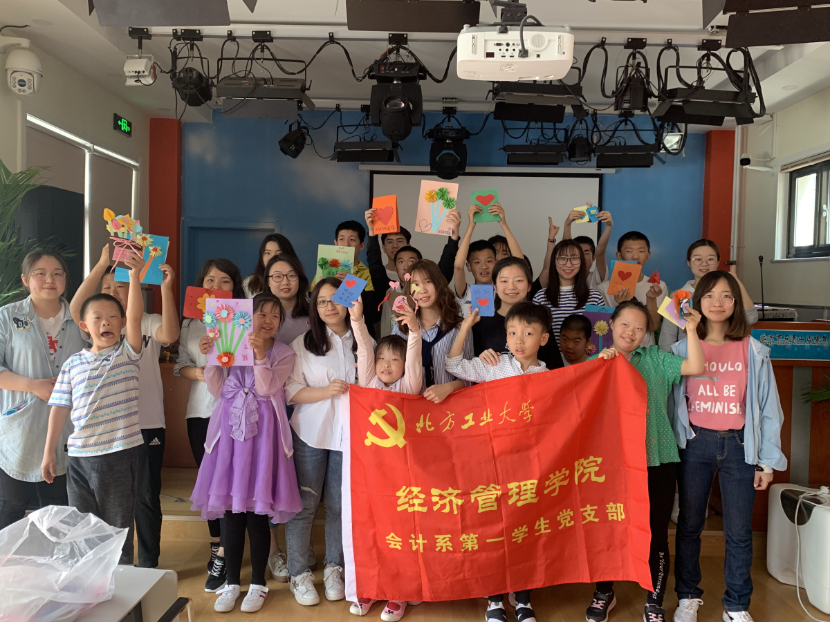 5月10日上午,今年会jinnianhui会计系第一学生党支部全体成员来到北京市石景山区培智学校看望这里的儿童。在母亲节来临之际,和他们一起制作母亲节礼物,将温馨的祝福送给妈妈。
