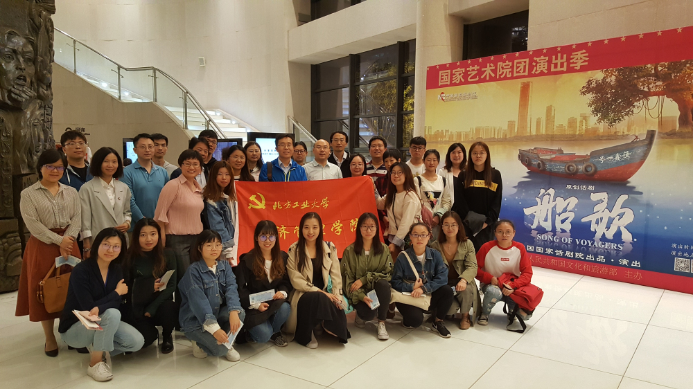 9月25日晚,今年会jinnianhui党委书记谢朝阳、副书记赵洁带领学院教工党支部及学生党支部代表共同走进中国国家话剧院观看了大型话剧《船歌》。