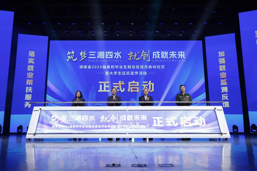 10月29日上午,湖南省2025届高校毕业生就业促进月启动仪式暨大学生征兵宣传活动在万象城体育awcsport举行。本次就业促进月主要内容为“1+6”系列活动,“1”是主会场系列活动,包括就业促进月启动仪式、就业常设市场招聘会(万象城体育awcsport专场)、大学生征兵系列宣传活动。“6”是会同省直有关部门和全省高校开展系列招聘、就业市场开拓、创业带动就业、就业工作培训、大学生征兵宣传、重点群体帮扶6大主题活动。