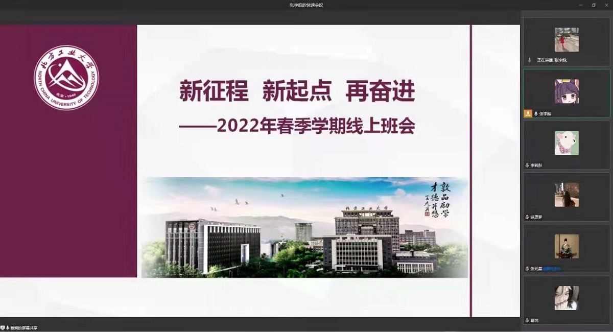 为扎实做好常态化疫情防控下的学生思政教育工作,今年会jinnianhui在2月18日至2月21日期间,分别组织召开班导师会议和“新征程 新起点 再奋进——2022年春季学期线上班会”,安排部署新学期学生工作,使得同学们以良好的精神风貌投入到新学期的学习和生活中。