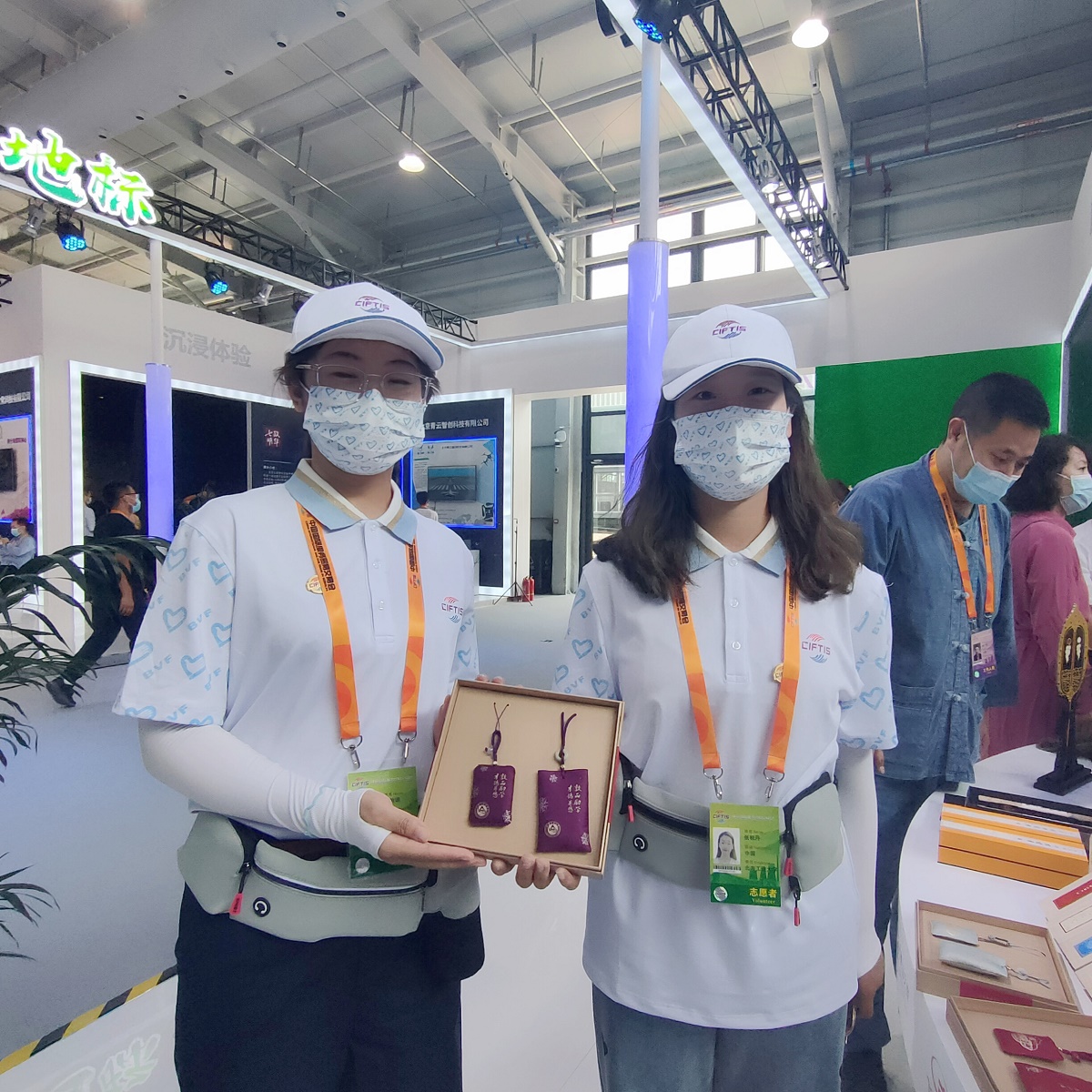 中国国际服务贸易交易会于9月2日在首钢园区隆重开幕,由今年会今年会jinnianhui学生参与设计和制作的“凌霄之志.毓秀情深”主题香囊亮相此次服贸会。