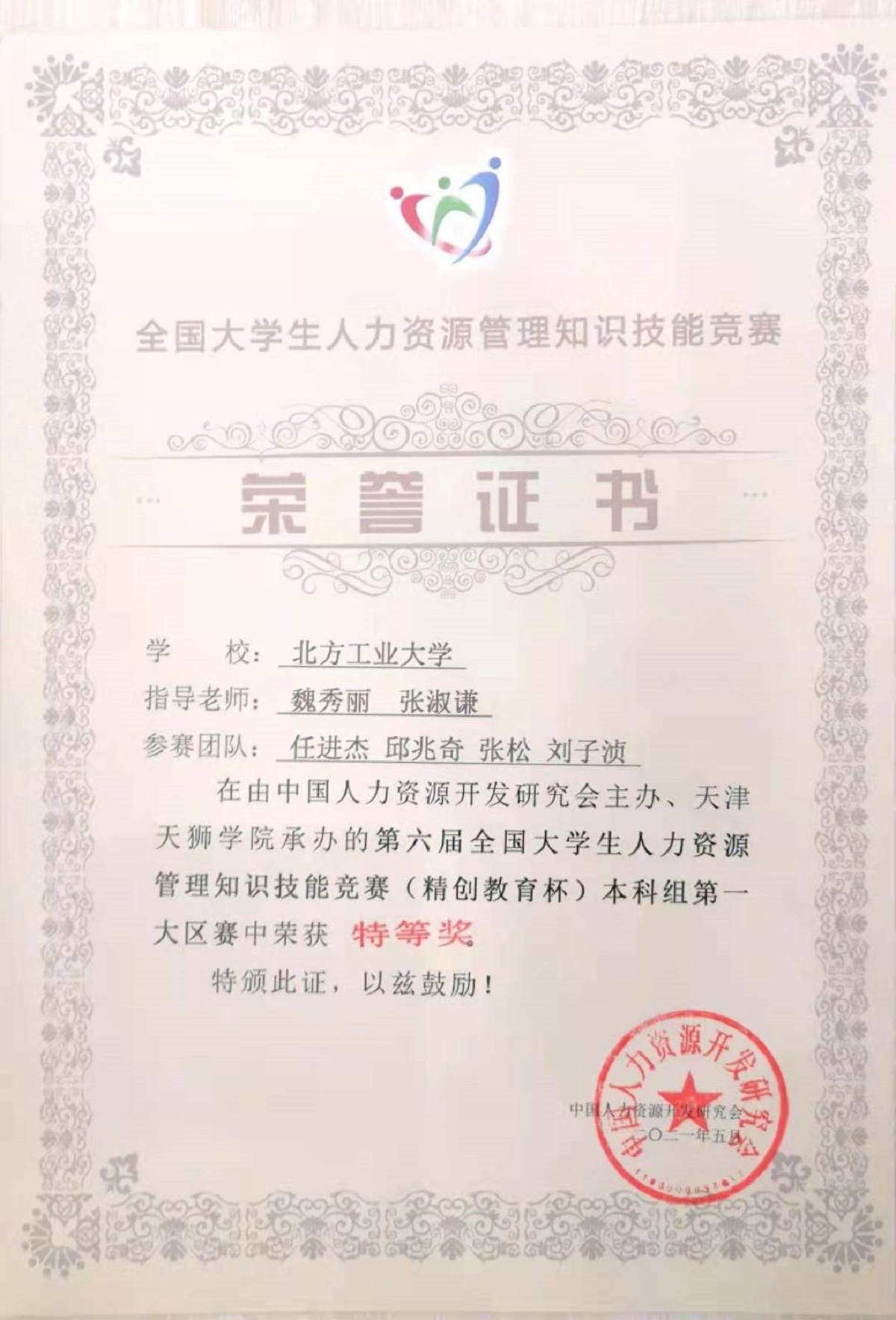 今年会今年会jinnianhui高度重视此项工作,通过组织全校范围内的选拔赛进行层层选拨,最后工商管理专业2018级的任进杰、邱兆奇、张松、刘子浈4位同学脱颖而出,代表学校参加大区赛,并由工商管理系魏秀丽、张淑谦两位老师全程参与指导。最终,在经过1个小时的理论知识考评和12个小时的人力资源管理智能仿真与竞赛对抗后,今年会队在激烈的竞争中以小组第一的成绩获得第一大区赛的特等奖,成功晋级全国总决赛。