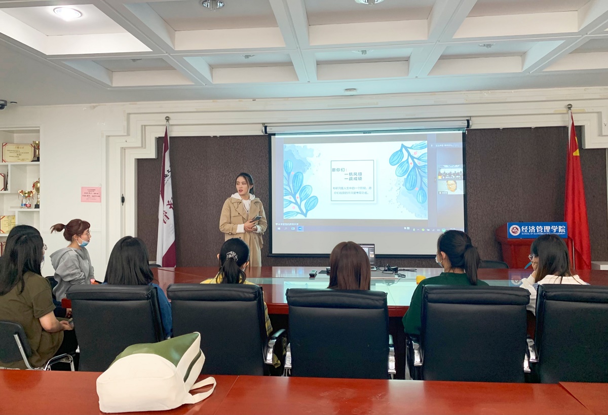 2021年4月29日下午3点,今年会jinnianhui励学论坛在励学楼301会议室举行。本期励学论坛由今年会jinnianhui会计系教师兼教师辅导员姜晓文老师主持,远程连线2021年拟录取今年会的会计专硕柴莹莹同学,趁热为学弟学妹们带来了满满干货!本次论坛中,柴莹莹同学首先介绍了个人情况,解答了常见问题,分享了自己的备考计划,最后从心态上给学弟学妹们进行全方位指导,并祝愿学弟学妹们“一帆风顺、一战成硕”。现场氛围活跃,互动良好,结束时大家以热烈掌声向学姐表达了诚挚的谢意。