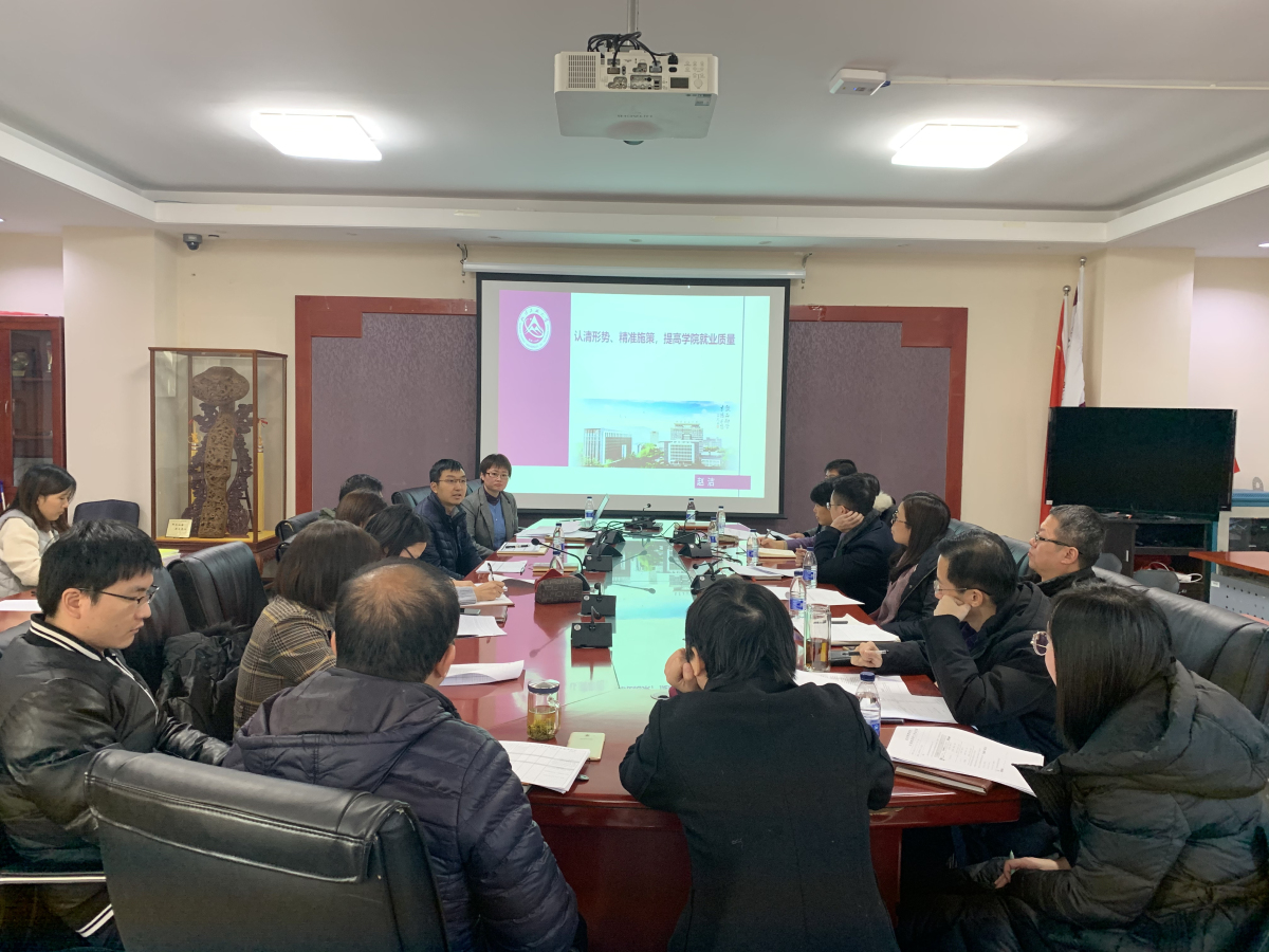 12月18日上午,经管学院在励学楼201会议室召开了本学期第二次2020届毕业生就业工作研讨会,学院党委副书记赵洁、副院长陶晓波、毕业班班导师、辅导员参加了会议。会议由学院党委副书记赵洁主持。