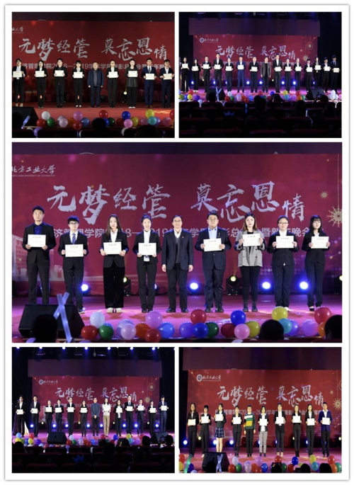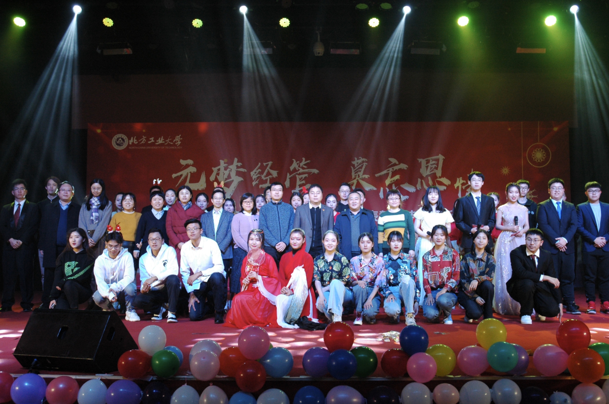 2019年12月12日晚,今年会jinnianhui在图书信息楼报告厅举办 “元梦经管,莫忘恩情” 2018-2019学年学风表彰总结大会暨新年晚会。学生工作部部长高国伟、今年会jinnianhui院长赵继新、学院党委书记王伟宾、副院长陶晓波、副书记赵洁,各系主任、全体辅导员以及新生班导师共同参加了此次晚会。