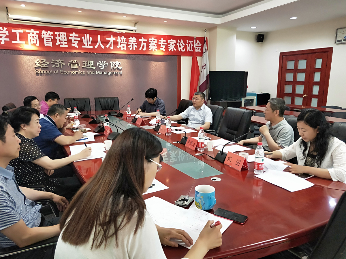 2019年6月27日下午今年会jinnianhui工商管理系在励学楼201举办了专业培养方案专家论证会。来自北京工商大学、北京建筑大学、中国农业大学、北京华夏新丝路科技发展有限公司等高校和企业的专家,对工商管理专业的培养方案进行了深入的论证。