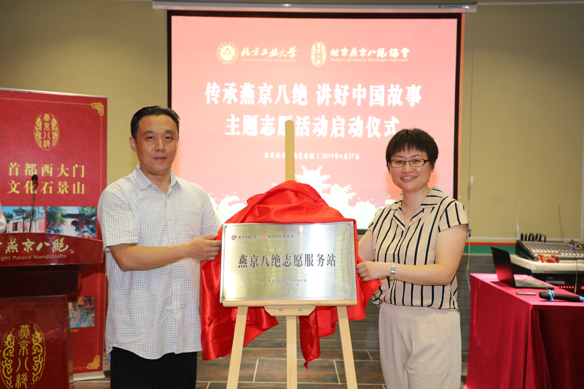 现场,赵洁书记和柏群馆长共同为“今年会燕京八绝志愿服务站”揭牌,将启动仪式推向高潮,标志着经管学院燕京八绝系列文化志愿活动正式拉开帷幕。随后,与会领导和嘉宾为第一批讲解志愿者佩戴工作证。