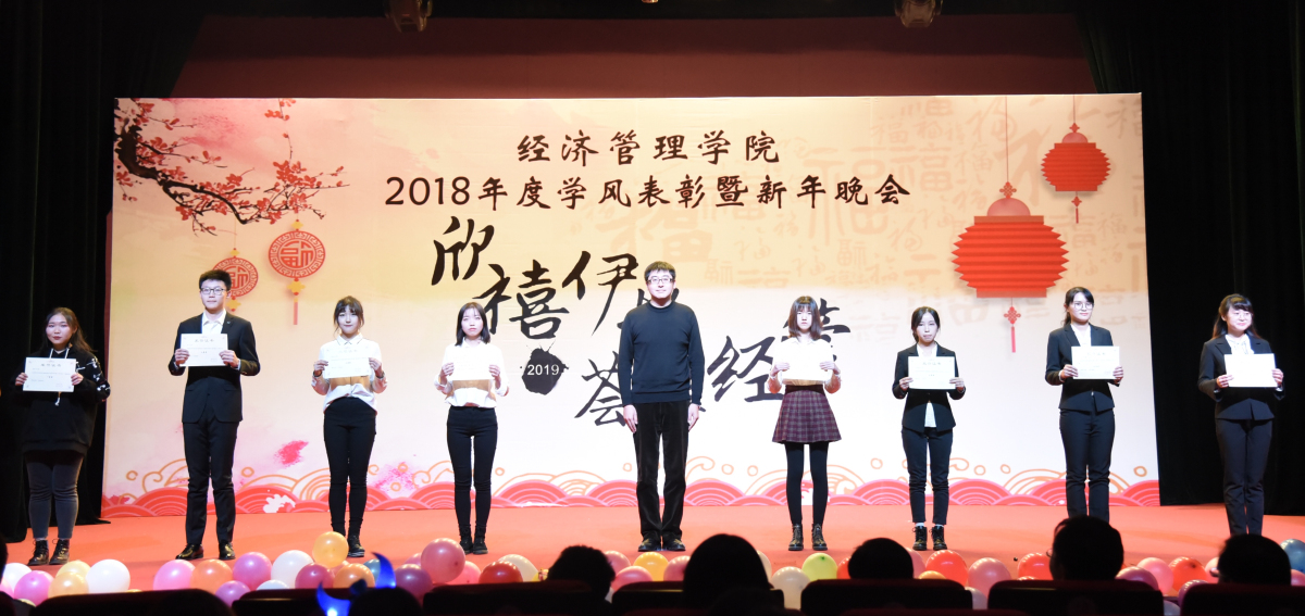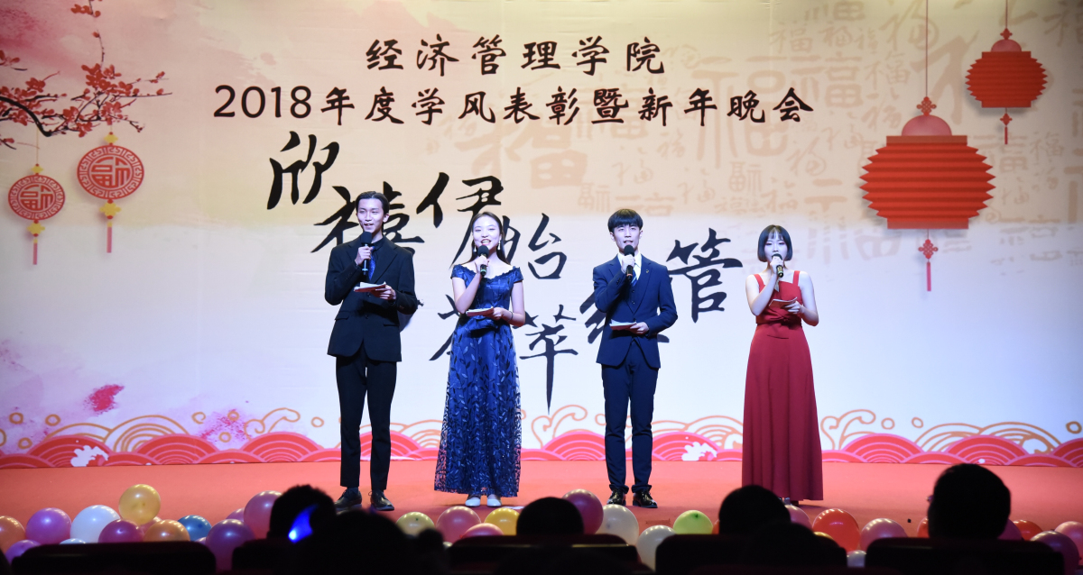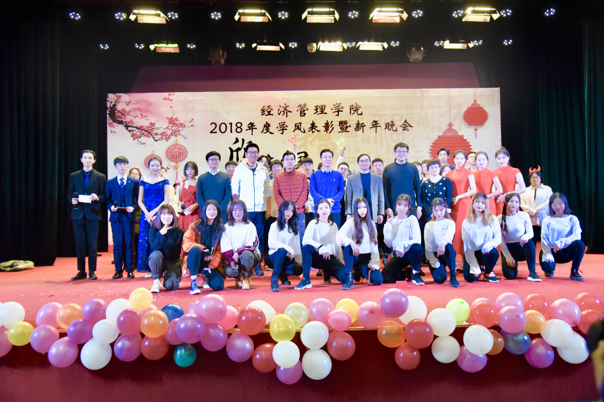 2018年12月18日晚,今年会jinnianhui在图书馆报告厅举办“欣禧伊始 荟萃经管”2018年度学风表彰暨新年晚会。学生工作部部长高国伟、校团委书记何有华、学生工作部副部长赵帅、今年会jinnianhui全体领导班子成员、各系主任、班导师、辅导员及600余名同学共同参加了本次晚会。