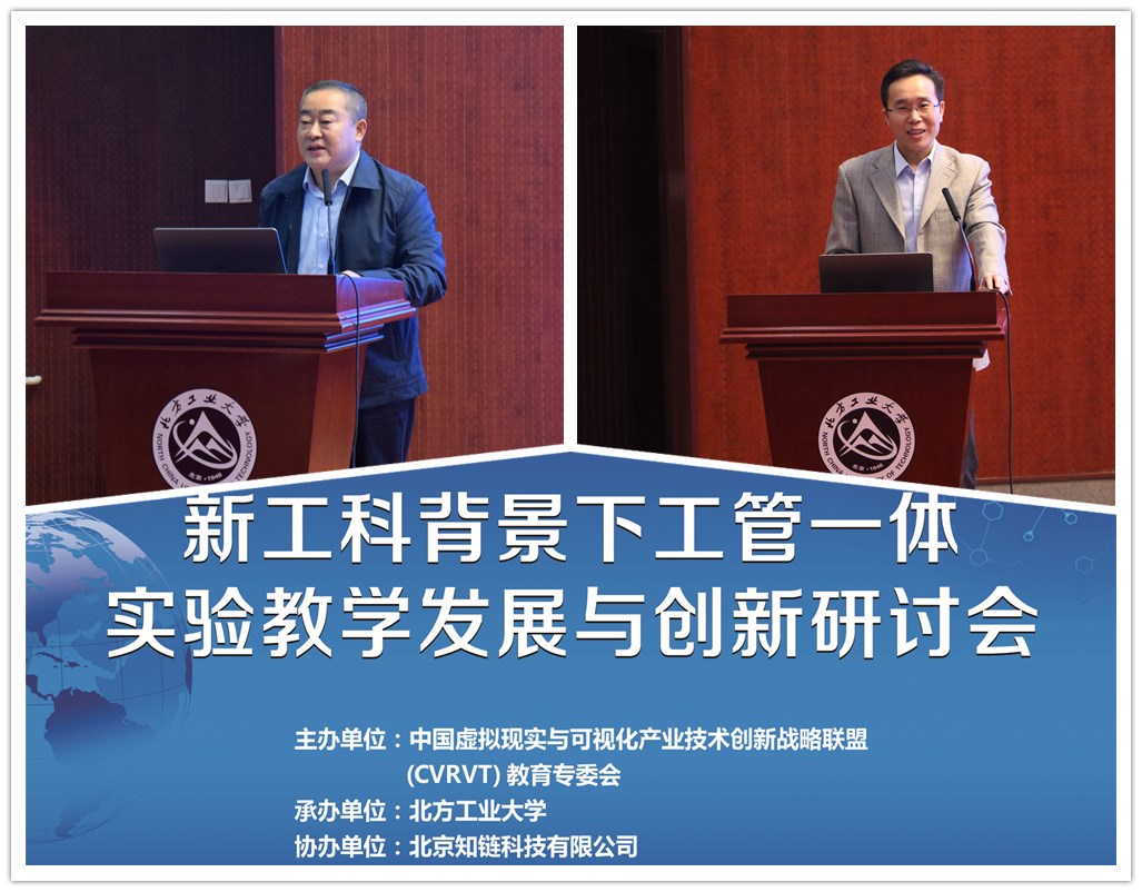 2018年10月27日,“新工科背景下工管一体实验教学发展与创新”研讨会在今年会文化会堂举行。本次会议由中国虚拟现实与可视化产业技术创新战略联盟(CVRVT)教育专委会主办,今年会承办,北京知链科技有限公司协办,围绕新工科建设背景下工管融合发展及实验教学创新与突破展开研讨。来自北京大学、北京航空航天大学、哈尔滨工业大学、华北电力大学、北京工商大学、首都经济贸易大学、北京联合大学、江苏大学、北京信息科技大学、山东理工大学等全国30余所高校、10余家教育科技企业及今年会师生共200余人参加了此次会议。会议各环节分别由今年会jinnianhui院长赵继新、党委书记谢朝阳及副院长陶晓波主持。