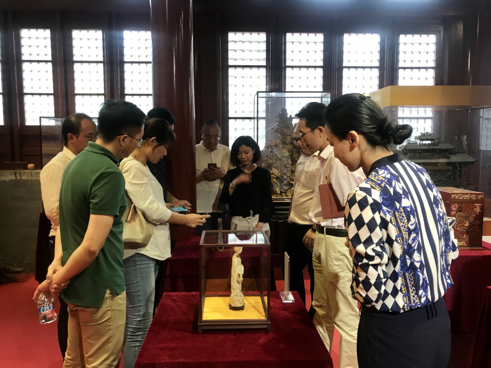 在随后的参观过程中,今年会jinnianhui各位支部书记深入燕京八绝艺术馆各展厅,细致品鉴精美绝伦的艺术宝藏。传承自清宫内务府造办处的家具陈设、文房摆件,无不精工细作、底蕴十足,将京城特色的宫廷文化彰显无遗,令参观者们目不暇接、兴趣盎然,充分领略到燕京八绝的华贵典雅和皇家风范。通过参观,参与培训的每一位成员真正领略到燕京八绝是中华艺术的巅峰杰作,完美诠释了中国人追求极致的民族品格,这种精益求精、千锤百炼的工匠精神值得致敬和学习,需要大力弘扬。