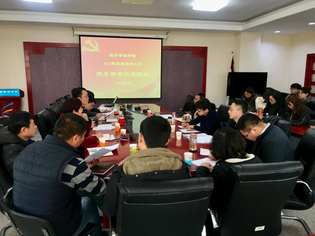 最后,谢朝阳书记作总结了讲话,对党支部书记工作给予了充分肯定,并就加强2018年抓基层党建工作提出新要求。学院党建应紧密结合十九大精神和学校第八次党代会提出的要求,深入开展理论学习,充分发挥党建引领作用,精心谋划支部工作,不断增强动力、能力和魅力,以百倍的热情和干劲为实现强院目标努力奋斗。