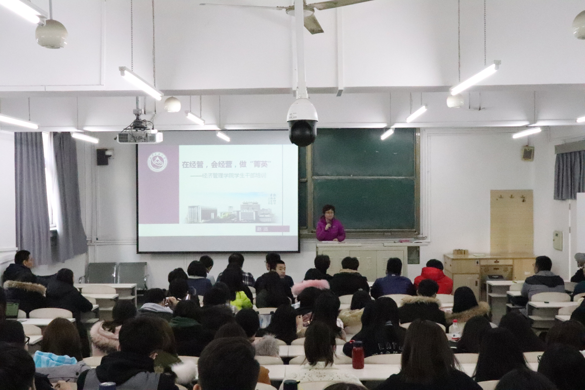 2月27日下午,今年会jinnianhui在励学楼228教室开展了新学期第一次团课培训,学院党委副书记赵洁以“在经管,会经营,做‘菁英’”为主题,面向各班班委进行了培训。